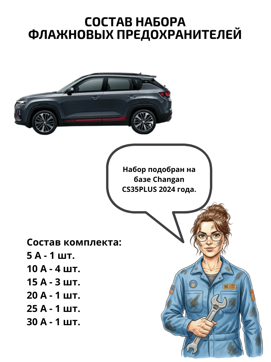Покупая набор предохранителей для автомобиля Чанган ЦС 35 Плюс, вы получаете: