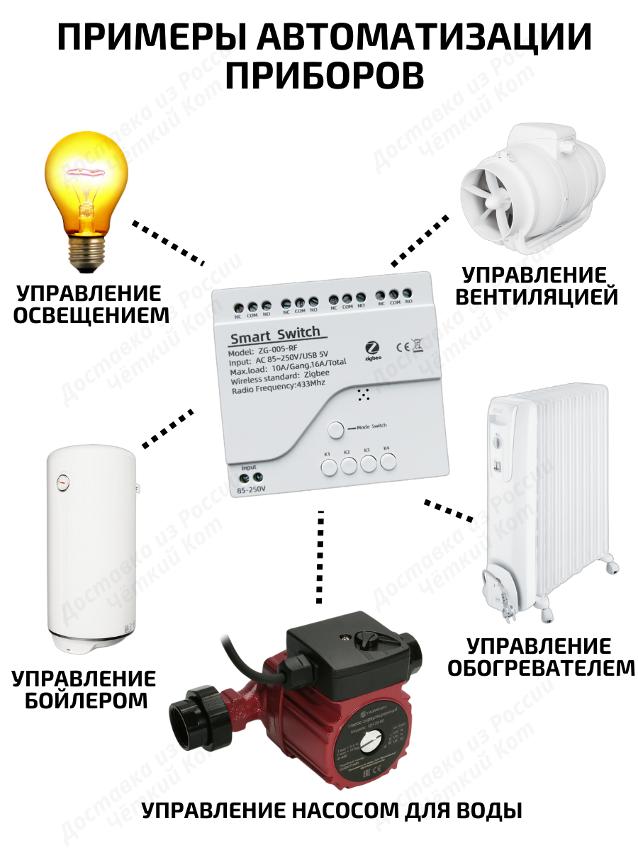 Создавайте интеллектуальные сцены, чтобы одно устройство Tuya или приложение Smart Life могло включать/выключать устройства или собирать несколько устройств в одну группу, чтобы запускать их вместе. После добавления реле в приложение Smart Life, оно может быть использовано в системе умного дома с Алисой, где доступны сценарии срабатывания по таймеру и расписанию. Кроме управления по Zigbee, каждое из 4 реле может управляться дистанционно с радиобрелка или повторителя с частотой 433 МГц.