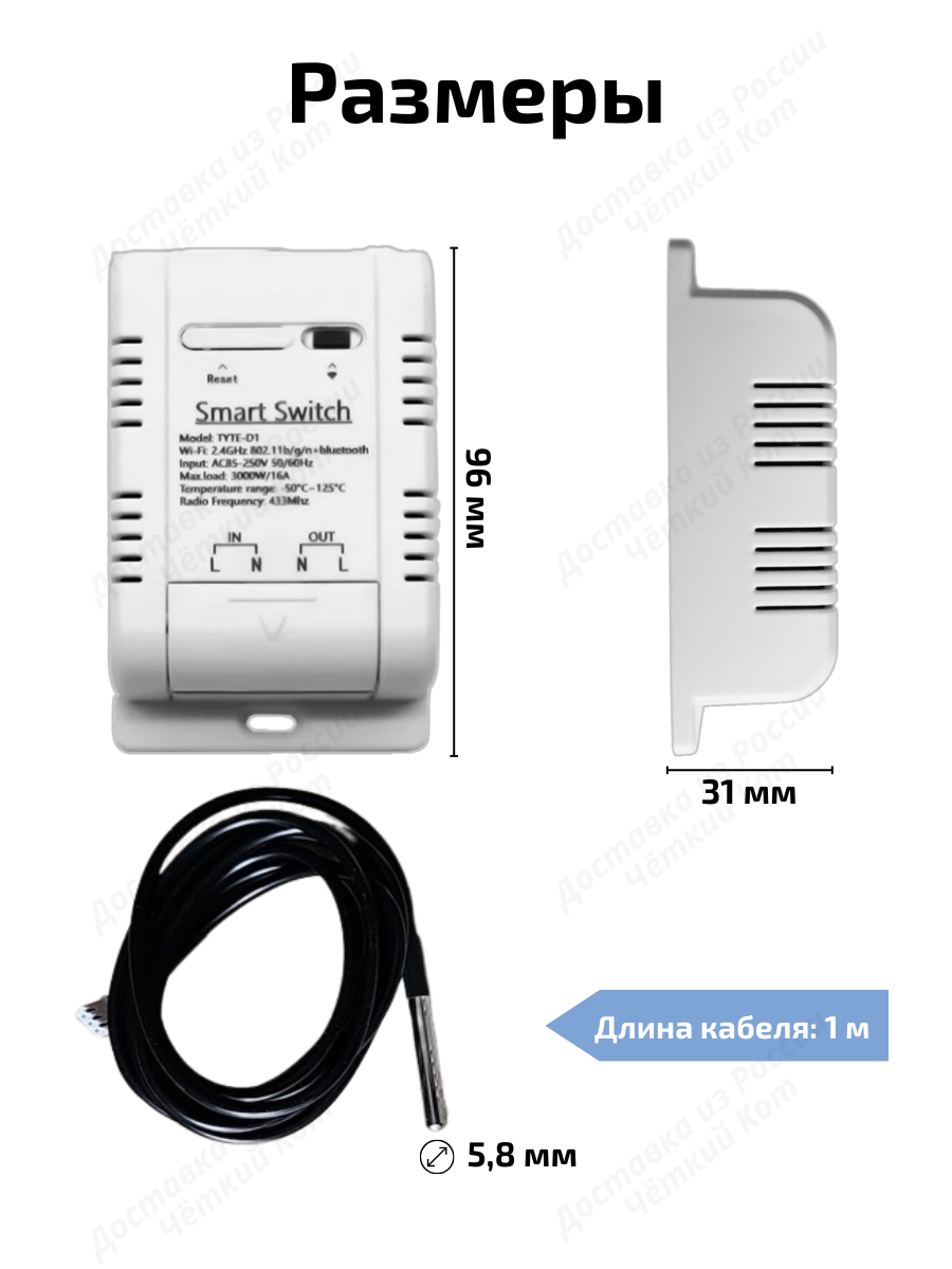 Термореле wi fi реле с температурным датчиком подходит для контроля вентиляции в теплице, для холодильника, для обогревателя, для водонагревателя, террариумах, аквариумах, датчик для бассейна, или отопления в помещении, как система умный дом. Термореле для инкубатора В комплекте с реле идет внешний водонепроницаемый датчик температуры DS18B20 (измерение в диапазоне от -20 C до +87,5 C).