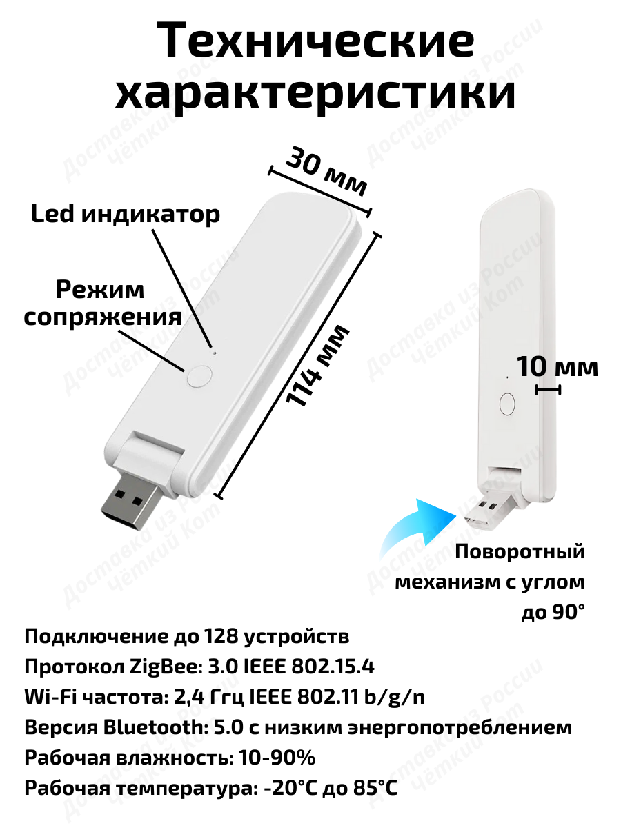 Умный хаб / шлюз Tuya ZigBee + Bluetooth является центром управления умного дома Tuya, подключатся через Wi-Fi, работает по ZigBee и Bluetooth протоколу. Хаб вв иде флешки можно установить в 90 градусов. У вас есть возможность создать умный дом, в котором все гаджеты будут настроены на взаимодействие друг с другом благодаря центру управления Tuya Zigbee 3.0.