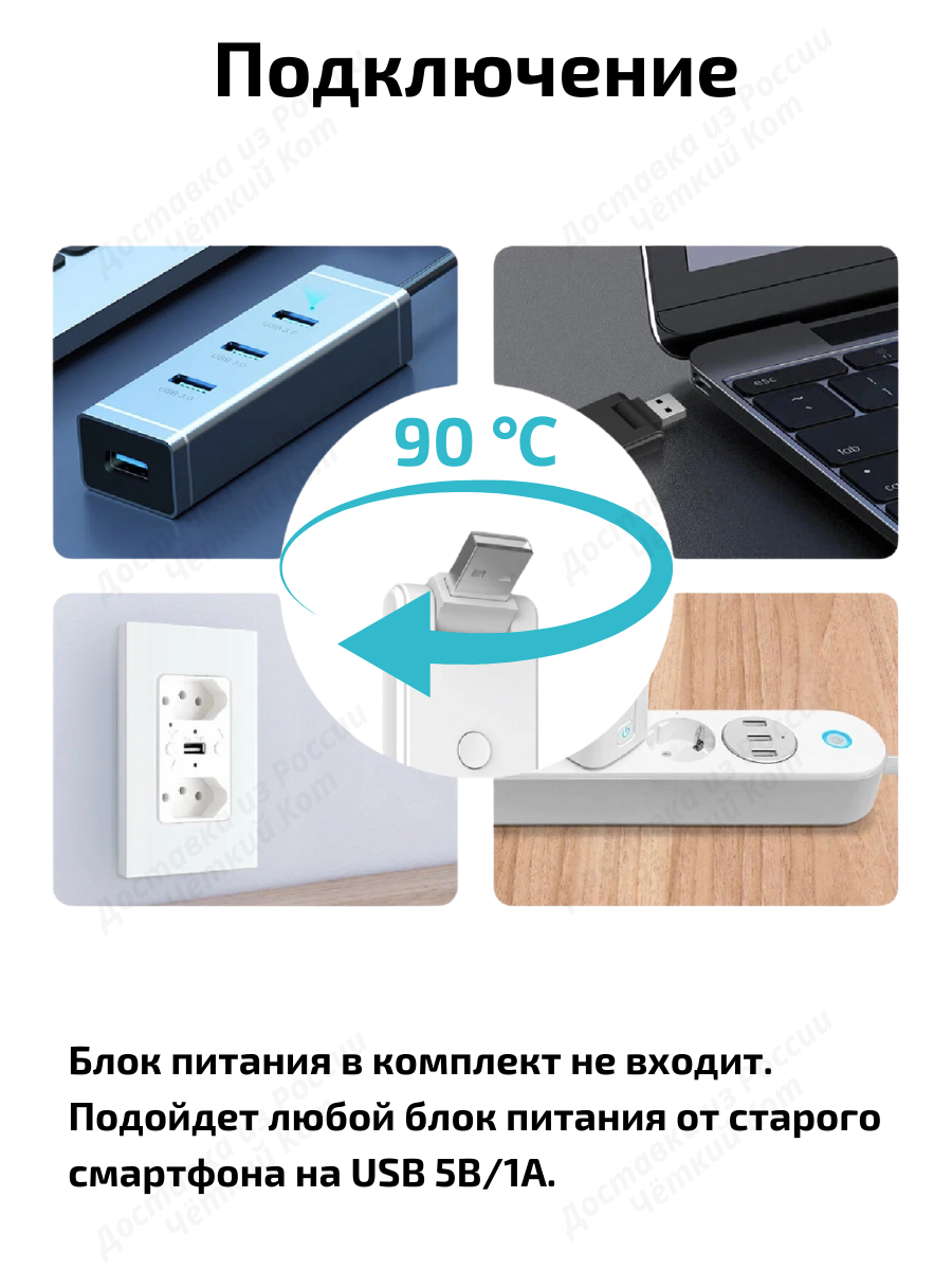 - Питание: USB порт 5 В, 1 А;