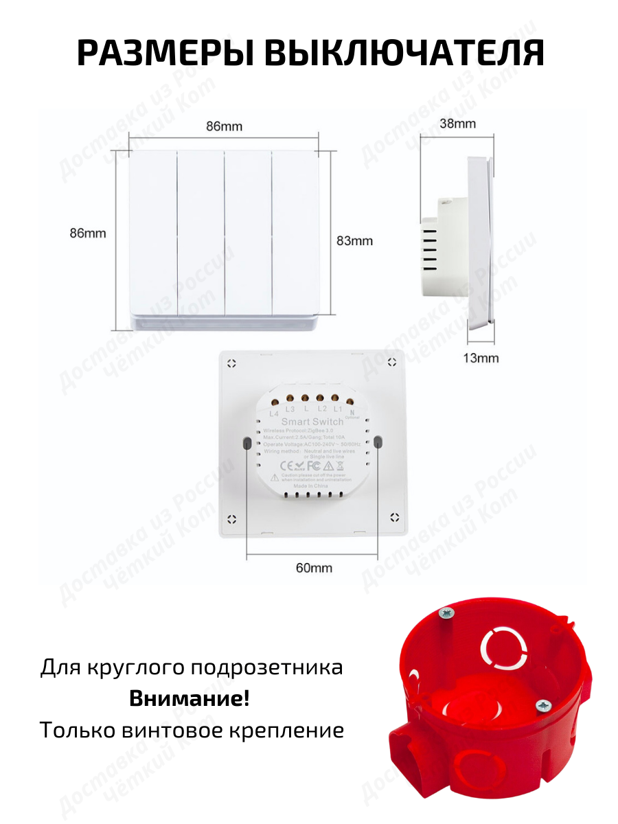 ВНИМАНИЕ! ЧИТАТЬ ПЕРЕД ЗАКАЗОМ! Дистанционный выключатель имеет вариант подключения с Нулем и без Нуля, т.е. он подходит в замен обычного выключателя. Смотрите схему подключения в картинках товара. В комплекте есть конденсатор для подключения без Нуля, есть инструкция.